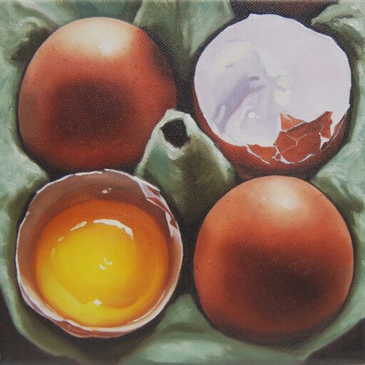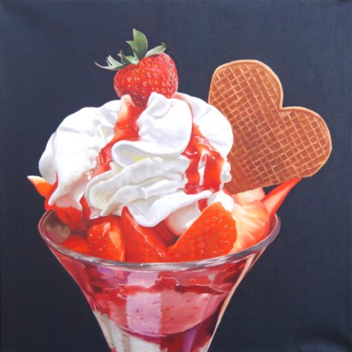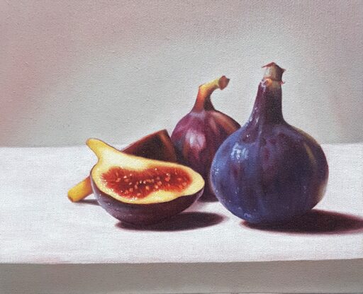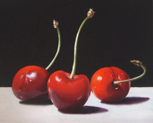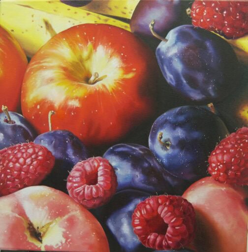 Ob glänzende Kirschen, aufgeschnittene Äpfel oder etwas Süßes: Wir nehmen diese alltäglichen Dinge genau unter die Lupe – und bringen sie mit Ölmalerei realistisch auf die Leinwand.
