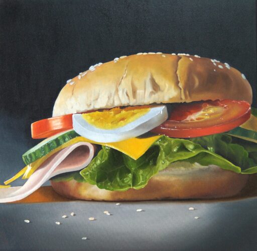 All you can eat in Öl – Food malerisch inszeniert. Realistische Ölmalerei trifft auf Genuss.