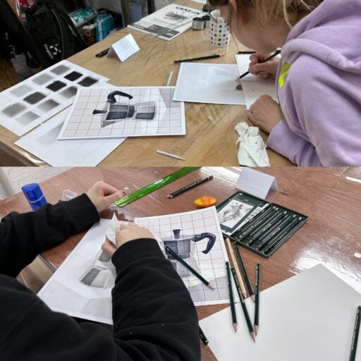 Wir werden zunächst gemeinsam die verschiedenen Materialien erforschen und die Vor- und Nachteile der unterschiedlichen Papierarten und Bleistifthärten herausarbeiten.
