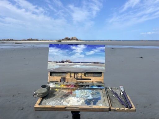 Wie mache ich meine Staffelei windsicher? Wie verhindere ich (zu viel) Sand auf der Palette? Wie vermeide ich es, von der Flut überrascht zu werden? Wann ist der beste Zeitpunkt, die Ebbe zu malen?